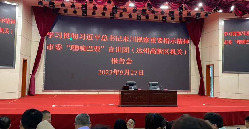 本网讯:9月27日,市委“理响巴渠”宣讲团,开展了关于“学习贯彻习近平总书记来川视察重要指示精神”报告会,中共四川业信工程咨询有限责任公司支部派员参加。