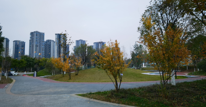 穿越公园100余米即到达成都爱奇艺AI创新大厦,这是天创荣耀1期项目,而四川业信集团总部位于天创荣耀2期(墅区内)。