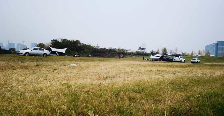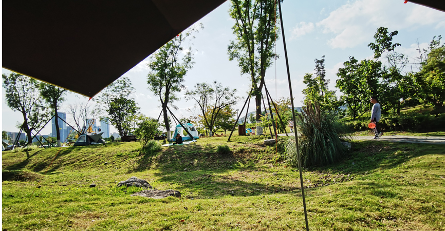而在公园专属区域,我们看到还有好多是市民朋友在搭建帐篷和搞野炊。