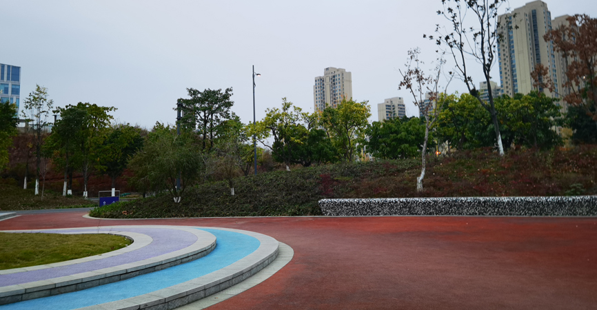 这里种植了20余种花草植物,修建了驿站水池,并且通过雨洪管理、湿地景观、雨水花园等‘海绵城市’理念,利用湖、湿地、溪流、潭、涧等多样性的水形态,实现雨水‘渗、滞、蓄、净、用、排’等功能,减少城市开发建设对生态环境的影响。